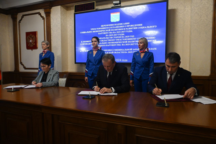 Соглашение о минимальной заработной плате и о социально-экономической политике подписали Александр Дрозденко, Ленинградская Федерация профсоюзов и региональный Союз промышленников и предпринимателей.