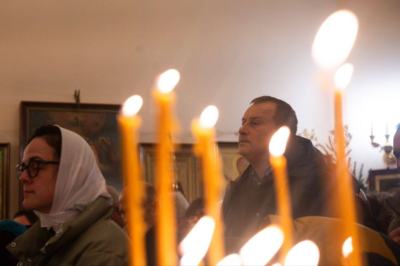 Фото: телеграм-канал губернатора Ленобласти Александра Дрозденко Александр Дрозденко посетил праздничное богослужение в храме Рождества Иоанна Предтечи в Юкках.