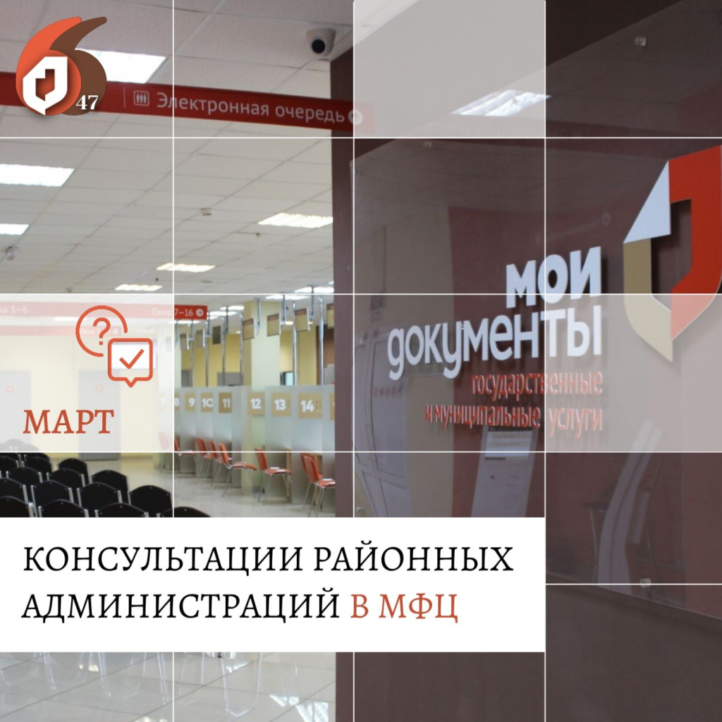 Специалисты районных администраций консультируют в МФЦ - 5, 6, 7, 13 марта.