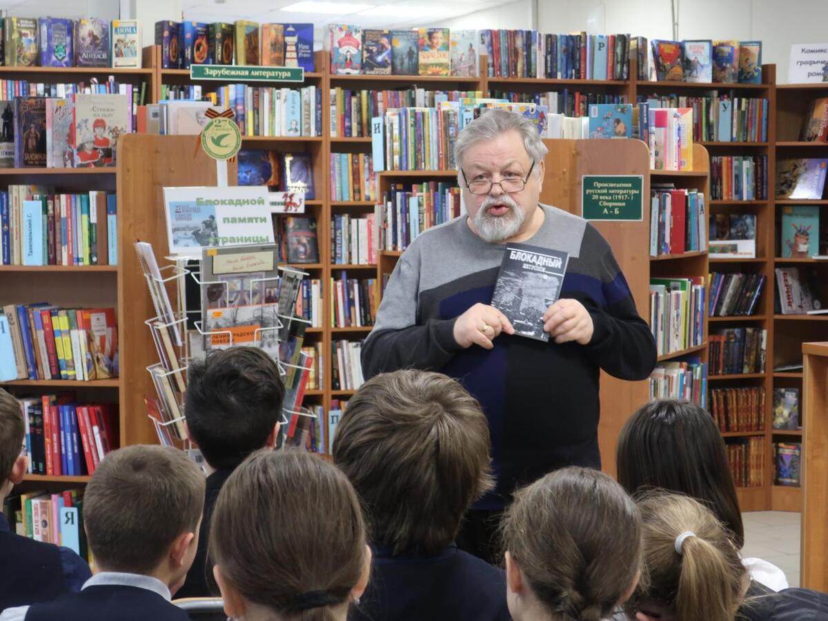 Петербургский поэт, прозаик и историк, член Союза писателей Санкт-Петербурга и России Евгений Лукин представил сборник «Блокадный метроном. Стихи и рассказы для детей о Ленинградской блокаде», посвященный 80-летию полного освобождения Ленинграда от фашистской блокады. Евгений Валентинович рассказал школьникам о произведениях, включенных в книгу. Прежде всего они обращены к юному читателю, тем более, что герои ее – дети, проявившие мужество и героизм в годы блокады.
