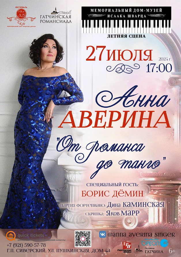 27 июля на летней сцене мемориального дома-музея Исаака Шварца в Сиверском пройдет концерт Анны Авериной.