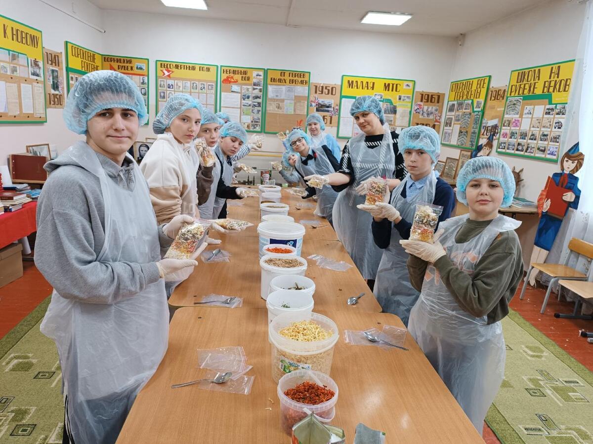 В Елизаветинской школе 12 февраля прошел мастер-класс по фасовке супов для бойцов специальной военной операции, организованный командой «Фронтовой обед-47».