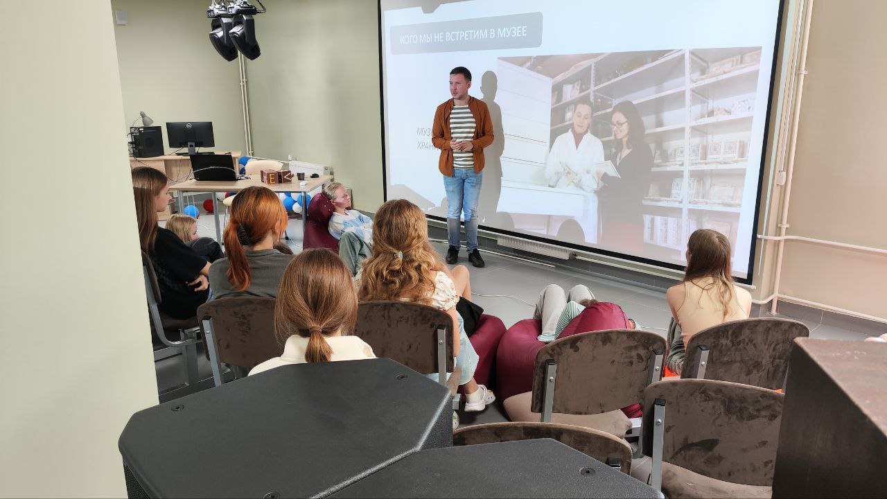Ребята приняли участие в дискуссии и обсудили, почему люди часто отвечают, что не очень любят музеи, но все равно посещают их, узнали о сотрудниках музеев и о том, какие специалисты требуются для работы в современных музеях, узнали также о том, как предметы попадают в музей и становятся основой для дизайна, экскурсионных программ и мастер-классов, сувениров и меню музейного кафе.
