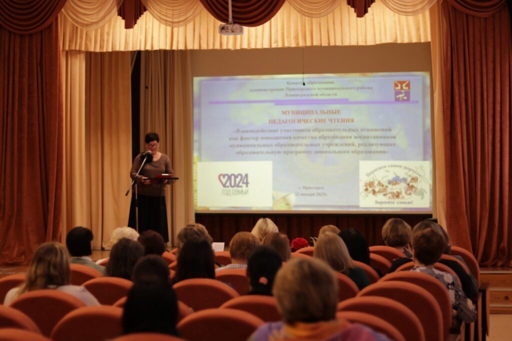 С приветственным словом к участникам педагогических чтений обратилась Кравченко Ирина Ивановна, председатель комитета образования, отличник просвещения РФ. В ходе муниципальных педагогических чтений были рассмотрены актуальные вопросы взаимодействия участников образовательных отношений в контексте повышения качества дошкольного образования. Обсуждены лучшие практики, подходы и стратегии, способствующие эффективному сотрудничеству между педагогами, родителями и другими участниками образовательного процесса. По итогам чтений Ирина Кравченко вручила благодарственные письма руководителям районных методических объединений Приозерского района, а также награды победителям и лауреатам муниципального конкурса видеоклипов «С любовью к своей семье, Родине!».