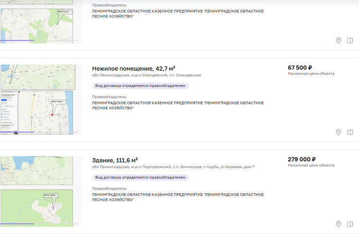 В настоящее время в базе собрано более 800 свободных объектов Ленинградской области, она постоянно дополняется. Сервисом могут воспользоваться индивидуальные предприниматели, юридические лица и самозанятые. При активации соответствующего фильтра можно получить доступ к недвижимости из специальных перечней и воспользоваться имущественной поддержкой, которая оказывается органами государственной власти и органами местного самоуправления. При этом государственное или муниципальное имущество передается во владение и (или) в пользование на возмездной, безвозмездной основе или на льготных условиях.