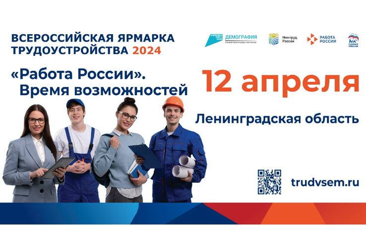 Всероссийская ярмарка трудоустройства «Работа России. Время возможностей» пройдет в Ленинградской области 12 апреля на 22 площадках, расположенных в разных уголках региона.