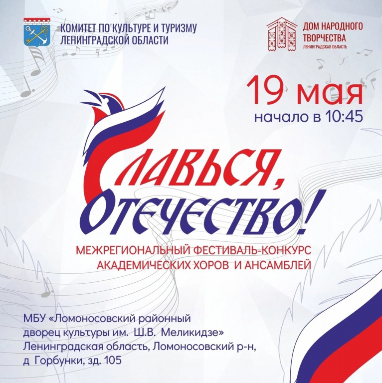 На сцене Ломоносовского районного Дворца культуры пройдет Межрегиональный фестиваль-конкурс академических хоров и вокальных ансамблей «Славься, Отечество!»