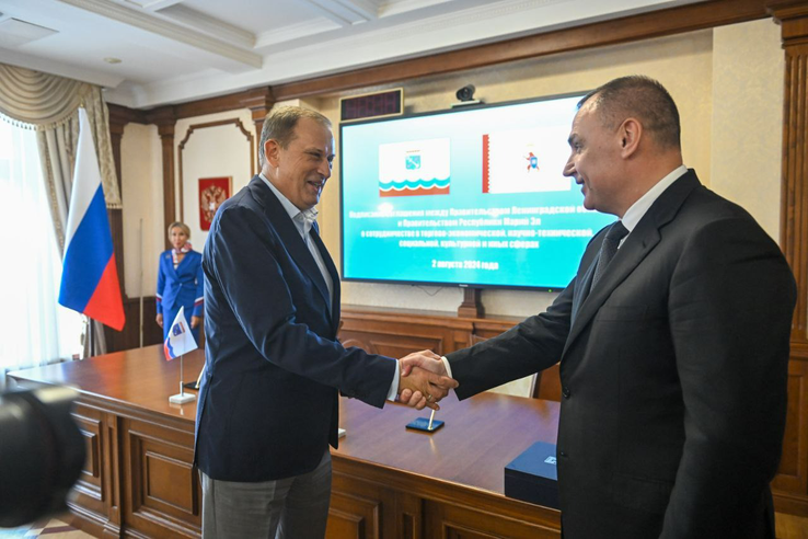 Соглашение между правительствами Ленинградской области и Республики Марий Эл о сотрудничестве в торгово-экономической, научно-технической, социальной, культурной и иных сферах было подписано губернатором Ленинградской области Александром Дрозденко и Главой Республики Марий Эл Юрием Зайцевым.