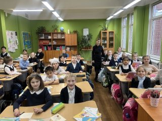 Сотрудники ГАИ посетили учеников Ново-Девяткинской школы в рамках профилактического мероприятия «Юный пешеход».
