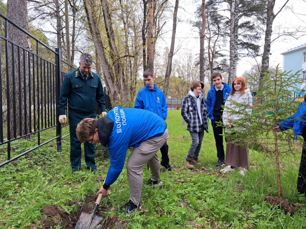 На пришкольной территории юные ломоносовцы вместе с другими участниками акции высадили 20 молодых елочек. Саженцы предоставили специалисты лесничества.