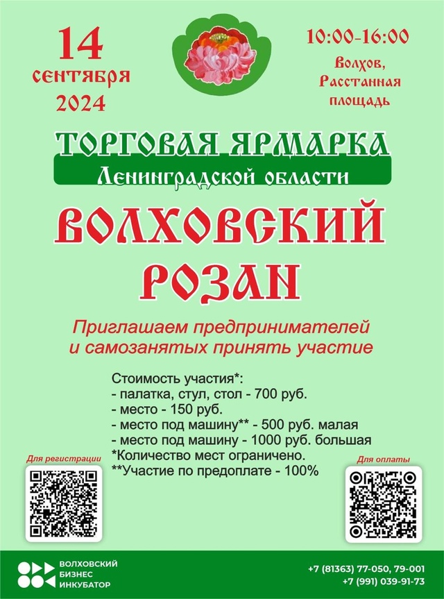 Организаторы приглашают всех желающих посетить это мероприятие. Ярмарка 'Волховский розан' станет не только местом торговли, но и культурным событием, где можно будет насладиться атмосферой общности и поддержки местного бизнеса.