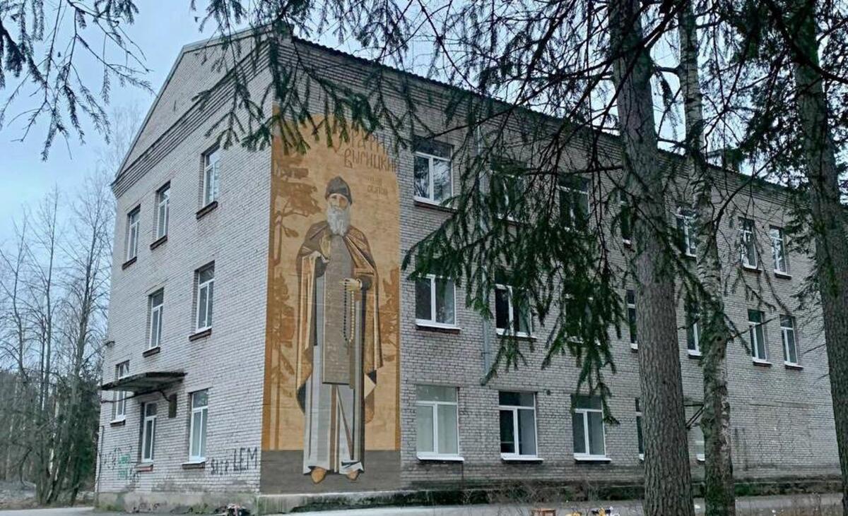 Десятиметровый мурал с изображением преподобного Серафима Вырицкого появился в Гатчинском районе на стене поликлиники Вырицкой районной больницы.