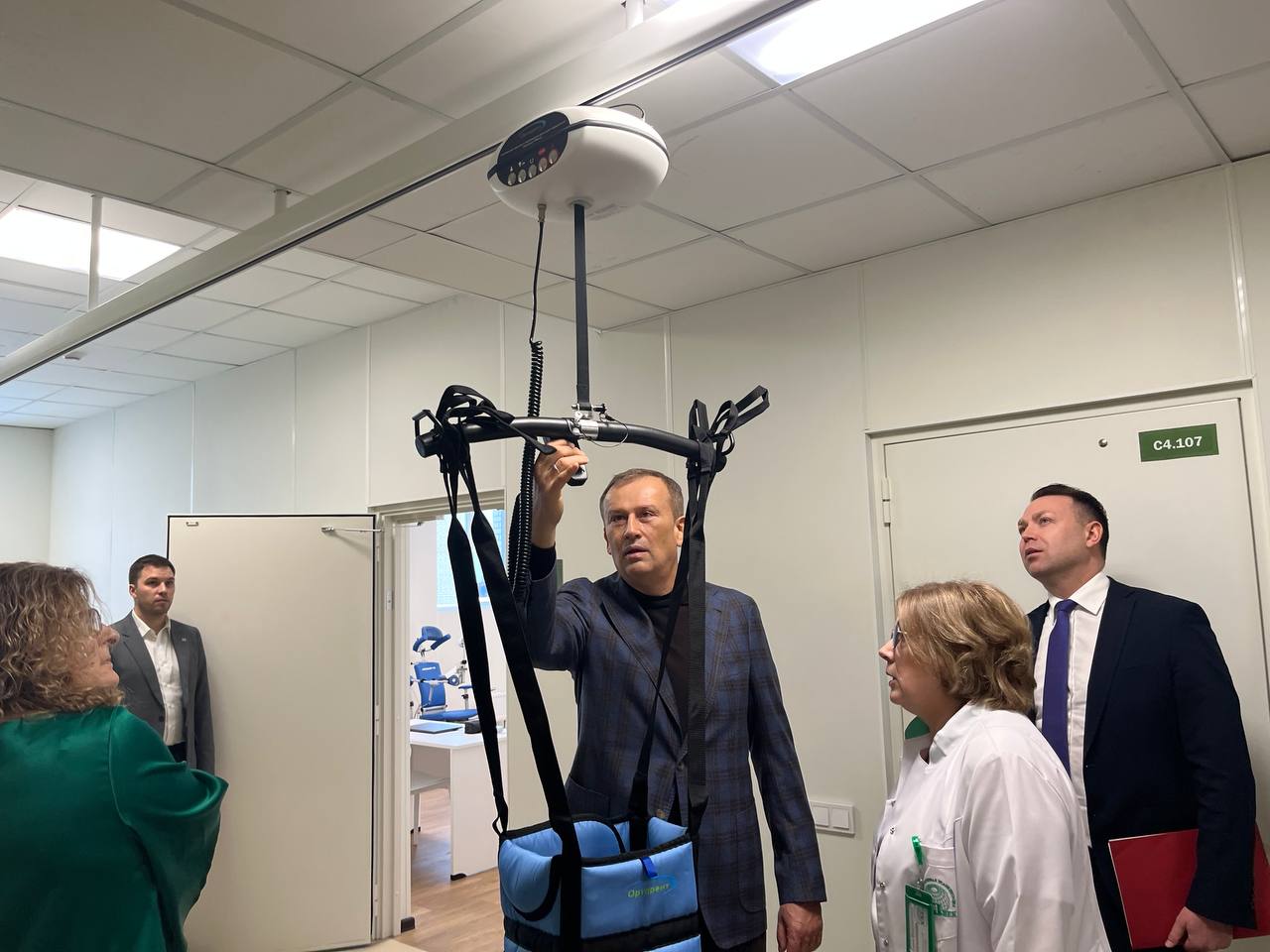 Глава региона отметил возможность передвижения по коридорам в специальных подвесных системах для пациентов с ограничениями, а также полноценные душевые даже в реанимации.